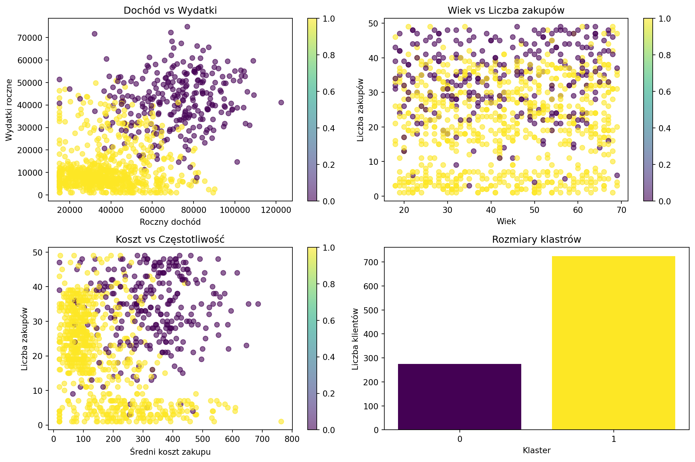 features = ['wiek', 'roczny_dochod', 'wydatki_roczne', 'liczba_zakupow',